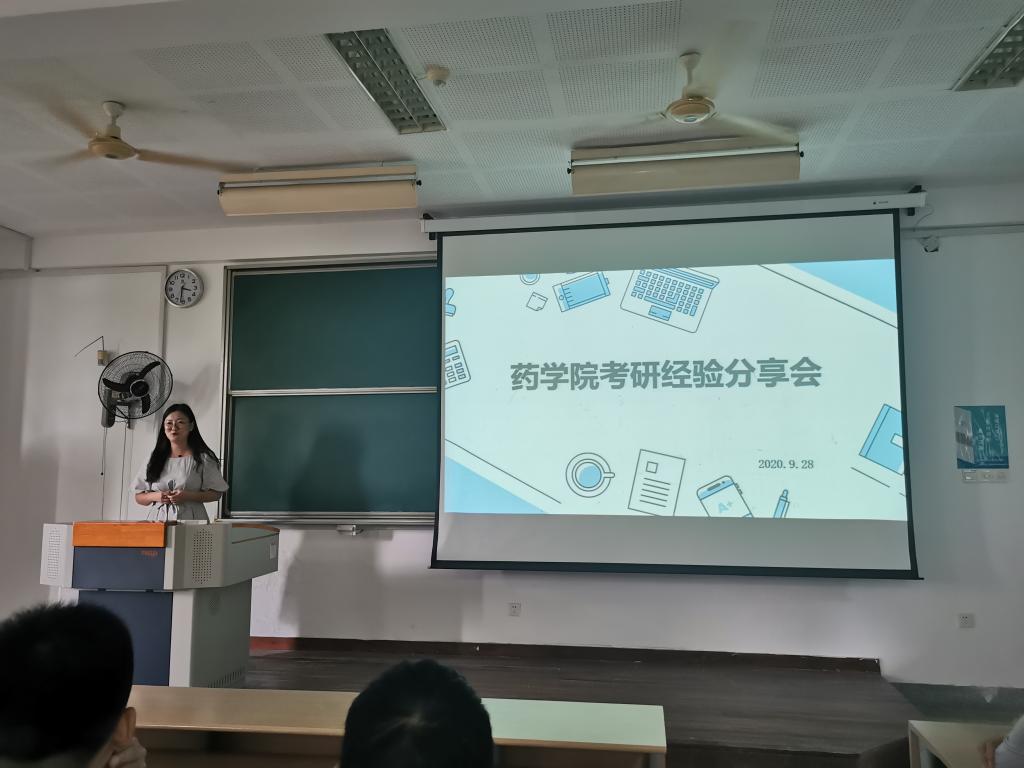 会议伊始,任老师介绍了本次分享交流会的三位嘉宾,分别是2016级考研至浙江大学的吴兆晓、考研至中山大学的田红茹和考研至江南大学药学院的丁若洋。三位同学分别从自身的考研经历出发,围绕如何选取专业院校、如何制定复习计划、考研的相关政策以及复习中需要注意的事项等方面为在座的同学们指点迷津。