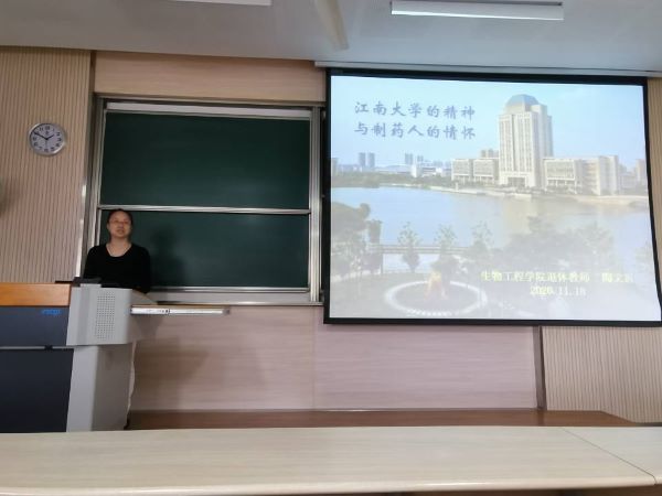 11月18日下午,药学院新生转型教育最后一讲在第二教学楼2C202教室举行。江南大学原校长,教授、博士生导师,微生物与植物细胞工程专家,2004级制药工程班班主任陶文沂老师受邀为大一新生畅谈“江大精神与制药情怀”。药学院党委副书记白冰,辅导员杨薇薇以及药学院全体新生参加了此次讲座。