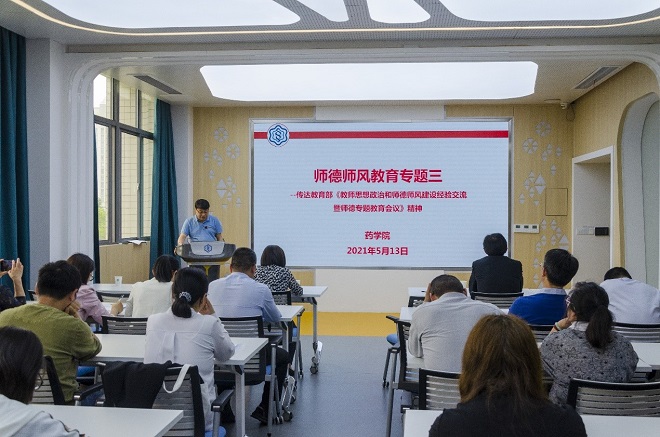 5月13日下午,药学院召开2021年全面从严治党暨巡察整改工作推进会,会议由党委书记陈霞雯主持,药学院全体教师参加会议。