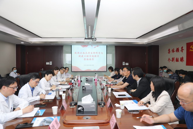 为进一步推进学习贯彻习近平新时代中国特色社会主义思想主题教育走深走实,以贯彻落实奋进计划,推动学院高质量发展为主题,主动寻求与医院和药企合作契合点,5月19日下午和5月23日上午,生命科学与健康工程学院党委书记史志洪、院长尹健率领导班子全体成员分别赴江南大学附属无锡五院和江南大学附属中心医院就党建联盟、深化合作、推进产学研协同创新等方面进行了主题调研。