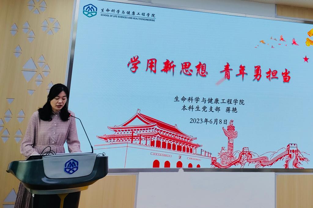 会议伊始,学院党委副书记、本科生党支部书记蒋艳作“学用新思想 青年勇担当”主题党课。她强调,青年党员要积极投身主题教育,从习近平新时代中国特色社会主义思想中汲取奋发进取的智慧和力量,熟练掌握其中蕴含的领导方法、思想方法、工作方法,不断提高学习能力和专业本领,为一流学科建设学院作出贡献。