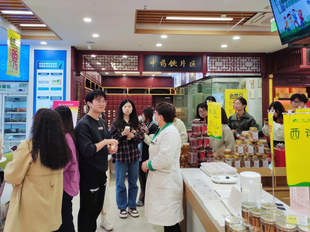 随后,师生一行实地参观了企业部门和药房门店,深入了解公司的运营模式、主业布局和产品服务等情况。通过走访交流,同学们深刻认识到医药产业前景广阔、医药行业大有可为,坚定了立足专业就业的信心和底气。