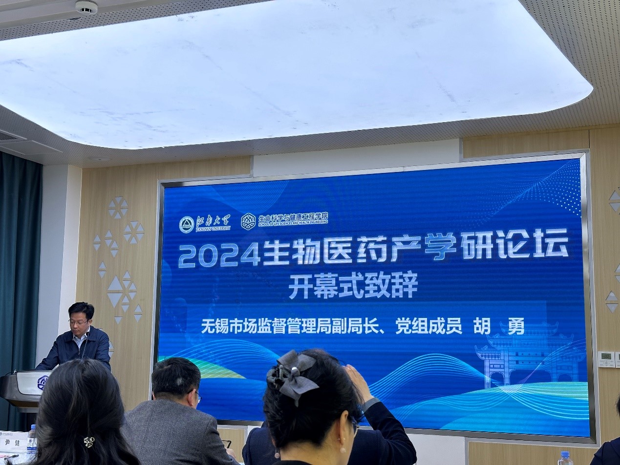 生命科学与健康工程学院院长尹健向参加论坛的嘉宾和师生致以诚挚的感谢,并表示,希望论坛发挥桥梁和纽带作用,发挥高校与企业各自的优势,促进教学科研与产业实践相结合,努力探索构建新时代的科技创新体系。推动生物医药产业的创新发展,为无锡乃至全国健康医药人才培养和生物制药事业的新发展提供有益助力。