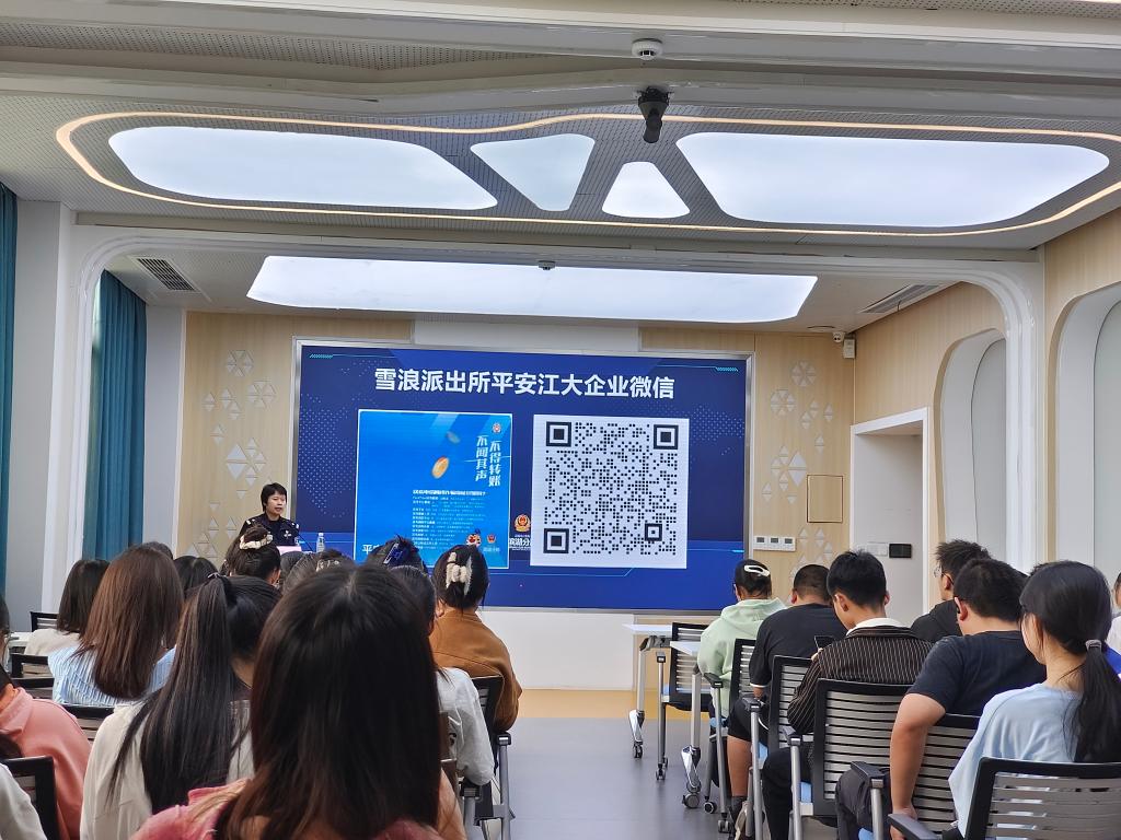 董警官梳理今年以来辖区电信诈骗案件的发案特点,并针对刷单返利、冒充客服、虚假网络贷款、杀猪盘、虚假购物、冒充公检法这几类频发的电信网络诈骗进行了深入浅出地分析。她指出,大学生社会经验相对缺乏,辨别能力较弱,自我防范意识缺乏,容易成为诈骗分子下手的目标。为此,她结合真实案例,生动地揭示了这些诈骗行为的本质、惯用手段和操作套路,提醒同学们面对不断演变的诈骗手段,必须增强自我保护意识,学会识别和应对,一旦遇到可疑情况,应立即报警。