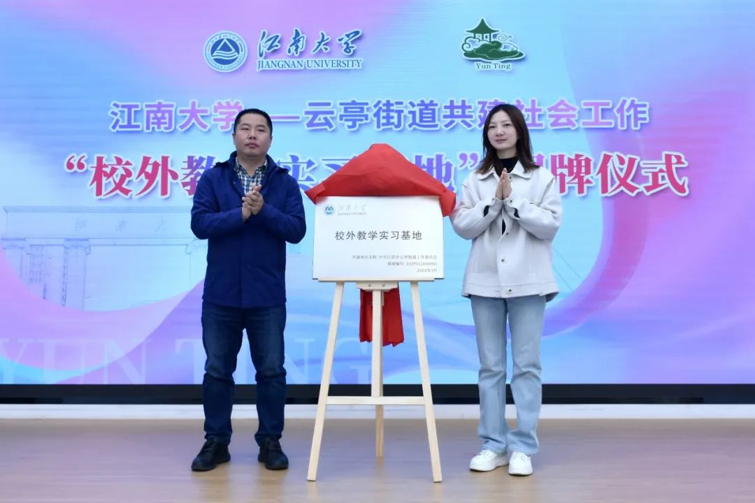 为进一步深化校地合作,推动社会工作专业教育与属地资源的融合,扩大社会工作专业的影响力,助力一流专业建设,3月18日,江南大学法学院与江阴市云亭街道举行教学实习基地挂牌仪式。江阴市民政局副局长许海英、江阴市社会救助管理中心主任周莹雪、江南大学法学院社会学系主任汪冬冬、云亭街道办事处副主任顾建萍、党工委组织委员孙丽丽等参加活动。
