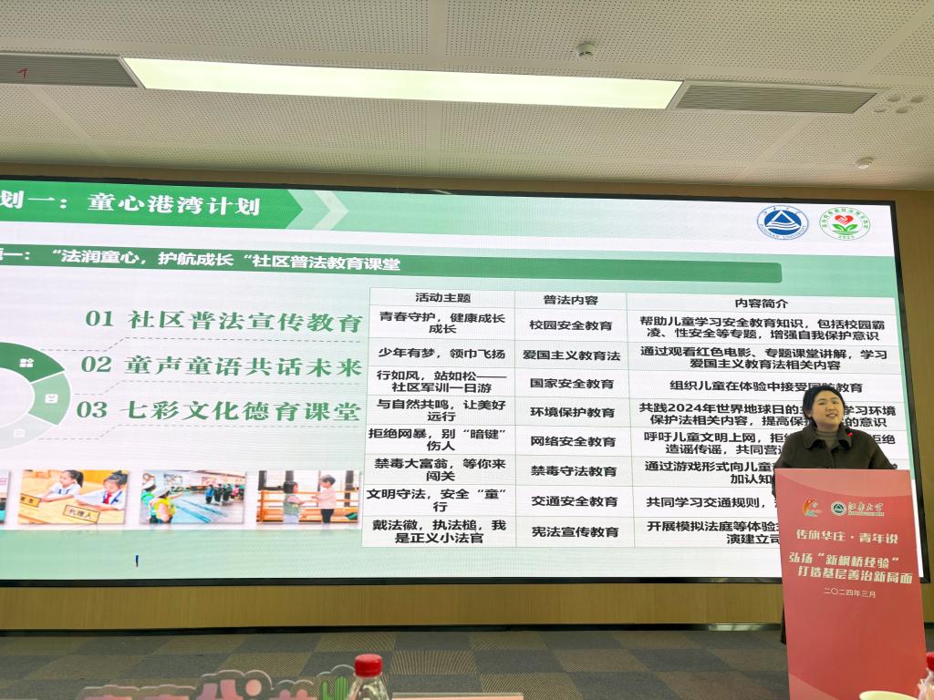 最后,缪晶晶对法学院基层治理实践计划进行发布。本年度学院将依托“益治青春”基层治理实践团队和“法在身边”普法帮扶团队,组织学生围绕社区法治、教育、养老、文化等建设工作开展特色课程、志愿服务、实践调研、顶岗实习等,充分发挥学生专业优势,赋能基层治理,引导学生在实际行动中深刻认识和把握新时代“枫桥经验”的民族特色、制度优势和时代价值,进一步增强坚持和发展新时代“枫桥经验”的责任感、使命感,让火热的青春力量在基层一线中绽放绚丽光芒。