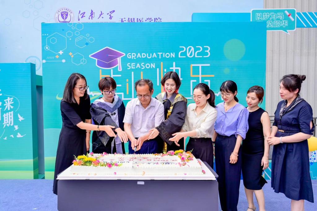 系部主任、2023届班主任为毕业生代表发放毕业纪念品并为毕业生送上祝福。医学院师生齐聚一堂,一同分享毕业蛋糕,许下对未来最美好的愿望,至此无锡医学院2023年毕业典礼在师生不舍的离别声与深情的祝福声中落下帷幕。祝愿全体毕业生悬壶济世无止尽,杏林春暖有归期,医帆风顺,万望君安。