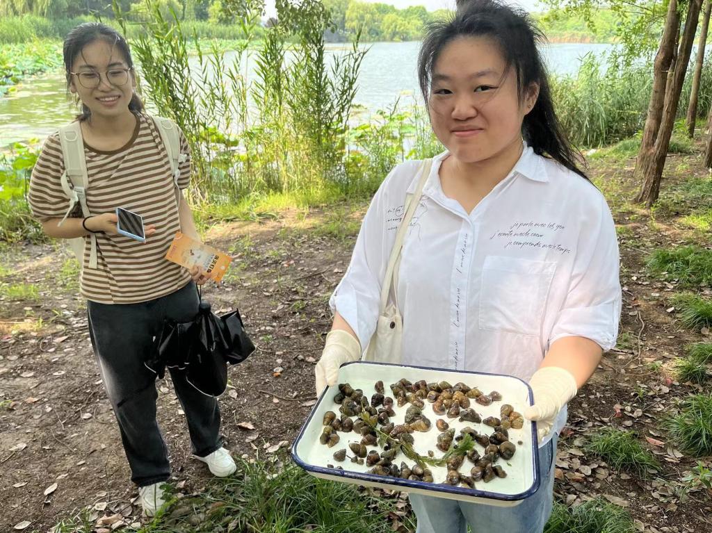 蠡园十八湾湿地学生查螺现场