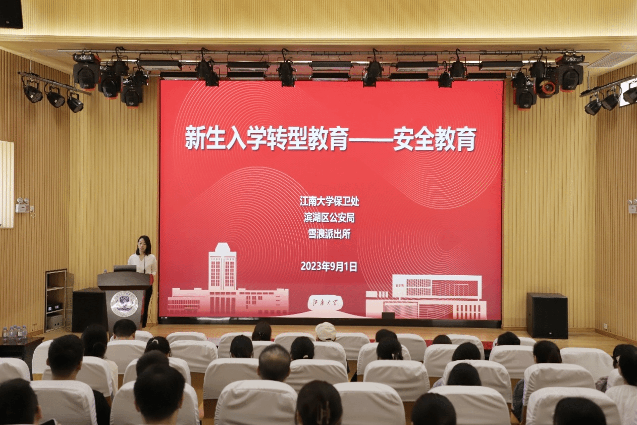 为加强校园网络安全宣传教育,提高2023级入学新生的网络安全防范意识,营造出安全、和谐、稳定的校园网络环境,进一步为学生的成长成才保驾护航。9月1日上午,面向无锡医学院2023级全体本科生、研究生新生的“防范电信网络诈骗专题讲座”在医学院C101报告厅顺利举办。专题讲座由无锡市公安局滨湖分局雪浪派出所警官杨恺主讲,江南大学党委保卫部、保卫处副处长王宇灏,无锡市公安局滨湖分局内保大队警官李京,党委保卫部、保卫处科长王列娟,党委保卫部、保卫处马红梅,无锡医学院本科生辅导员李奈夏,研究生辅导员杨宇出席活动, 此次活动由无锡医学院党委副书记、副院长包羽主持。