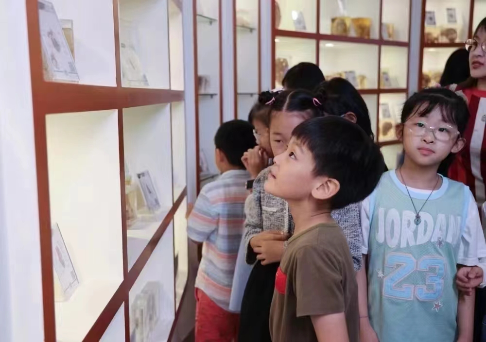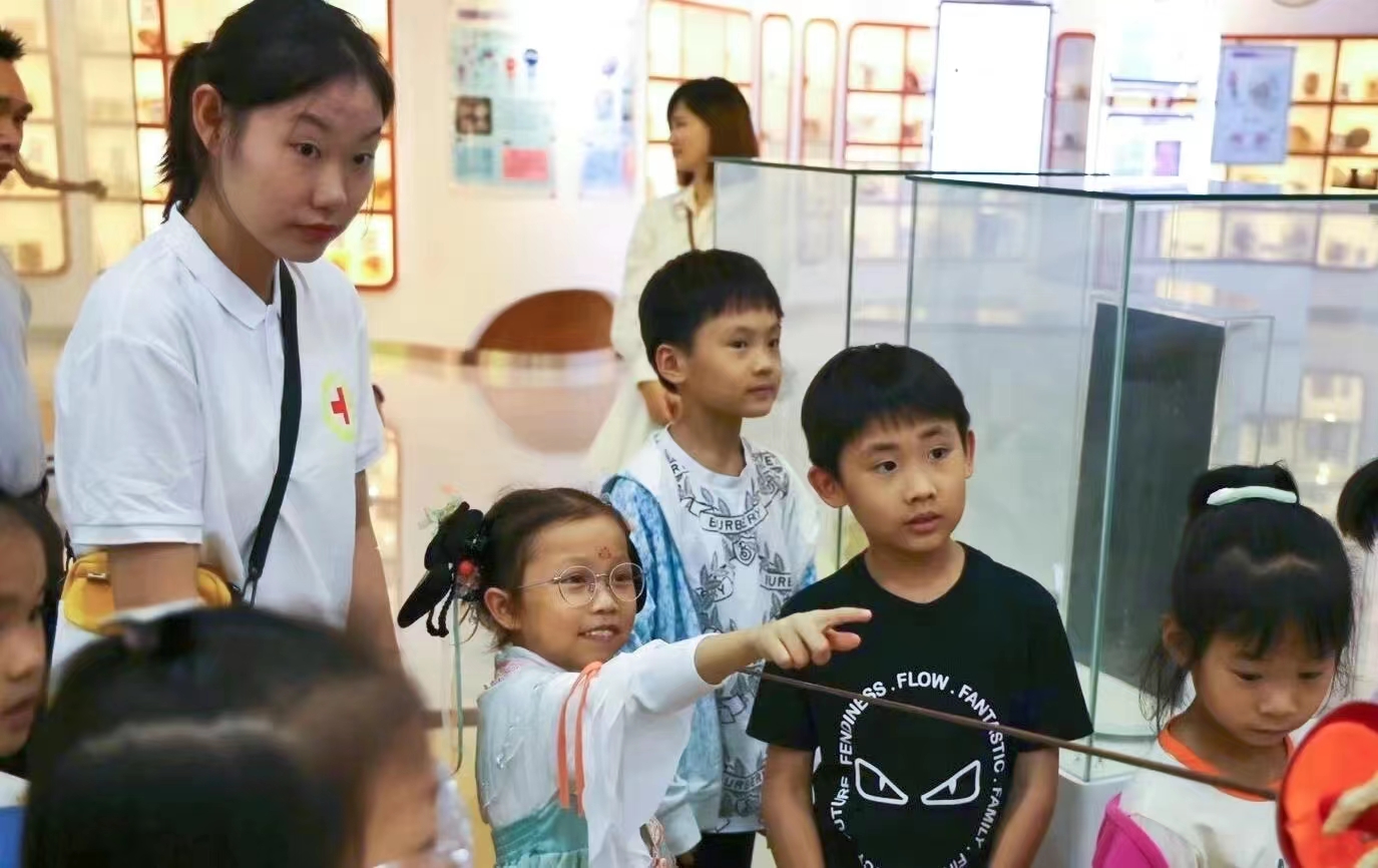 开课仪式上,来自无锡医学院首届临床医学专业本科毕业生、浙江大学医学院附属第一医院心内科医生陈宇潇通过线上视频为小朋友们送上寄语与祝福。生命科学与健康工程学院钱建瑛教授作为家长代表为小朋友们及家长介绍了校院情况。活动第一站,志愿服务团队成员带领小朋友及家长一行参观了江南大学人体科学馆。从人体骨骼到肌肉,从神经到血管,从各个重要器官结构与功能到胚胎展区,小朋友们驻足停留在各类人体标本前仔细观察,讲解员们以通俗易懂的语言细致讲解,将小朋友们带入充满生命奥秘的世界。