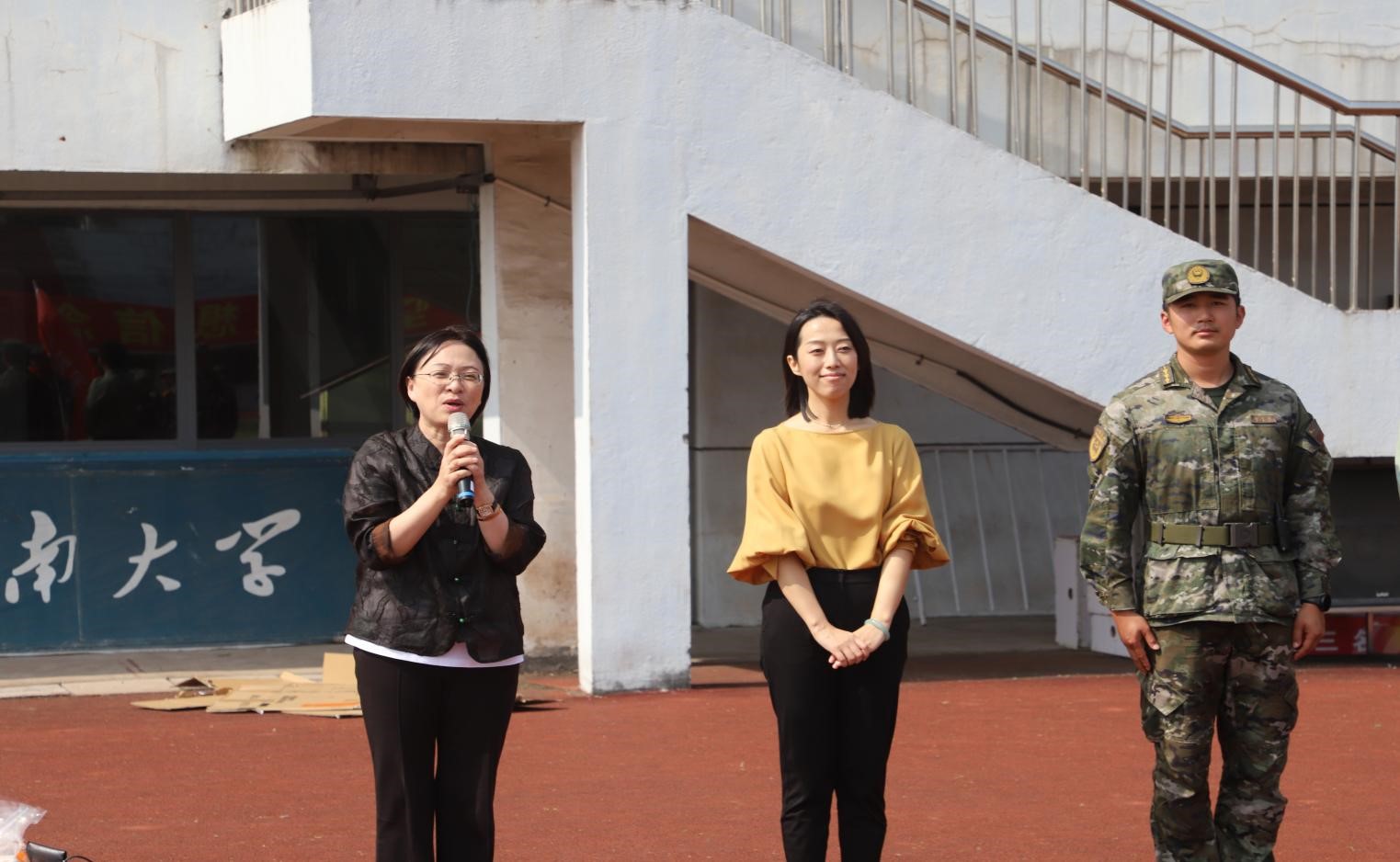 向琪为军训学生发放慰问品