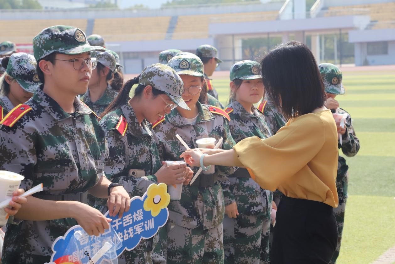 最后,学院领导老师们为教官和参训学生们带来了贴心的慰问品,鼓励大家在今后的训练中奋勇向前,期待大家在最后的汇演中勇创佳绩。经过军训的洗礼,同学们也定会将团结合作和坚韧不拔的精神融入今后的大学生活,成为有理想、敢担当、能吃苦、肯奋斗的江南医学人。