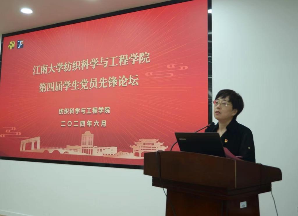 6月14日下午,纺织科学与工程学院第四届学生党员先锋论坛在学院A103会议室举行,学院党委书记张菁燕,党委副书记、副院长杨莉勤出席论坛,100余名学生党员、发展对象、入党积极分子以及2025届毕业生参加活动。论坛由研究生辅导员孙慧主持。