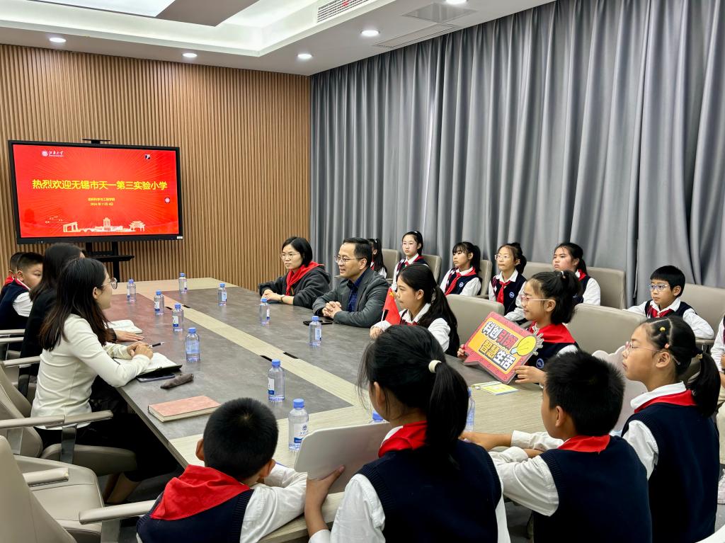 11月4日,无锡市天一第三实验小学尤立忠副校长一行来纺织科学与工程学院参观。纺织科学与工程学院党委副书记兼副院长杨莉勤、织光者协会指导老师伏曦参加交流活动。