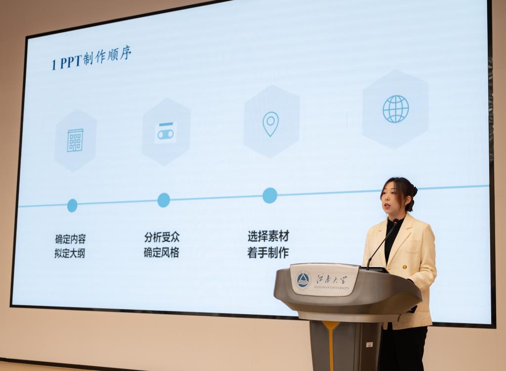 纺织科学与工程学院专职组织员张志新作《文无定法 有规可循:浅谈公文写作的认知与实践》培训,对各类公文的格式要求和具体细节的进行讲解刨析,结合实际工作感悟分享经验技巧,使学生干部对公文的撰写规范与用途意义有了更全面深刻的认识。无锡医学院辅导员鲁钦正在《从入门到精通,带你玩转校园短视频》短视频创作培训中,详细讲解了单反相机的使用技巧,并辅以生动案例讲述构图的要点和方法,使参训学员短视频拍摄创作水平及实际操作能力得以提升。纺织科学与工程学院研究生会执行主席姜雨萌分享《如何让团学工作汇报表达更清晰:PPT制作技巧》,从制作顺序、框架结构、视觉效果、模板分享等多方面细致解剖PPT制作诀窍,为学生骨干后续工作汇报打下了坚实基础。