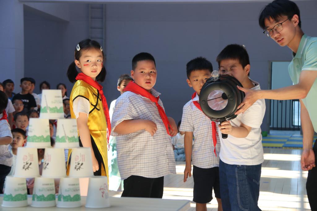 小朋友体验“空气炮”