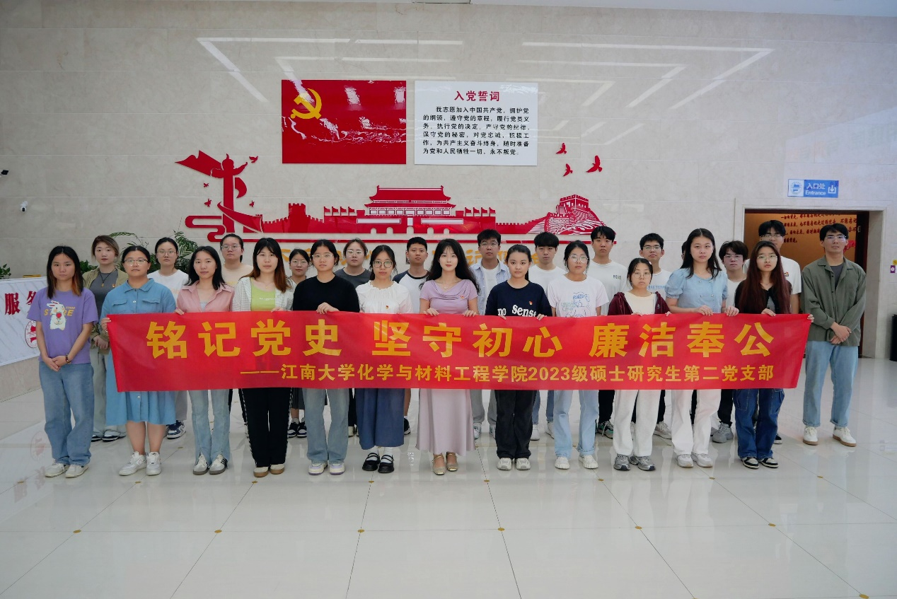 为深化党史学习教育,牢记党的初心使命,弘扬伟大建党精神,在七一建党节前夕,化学与材料工程学院2023级研究生第二党支部开展“铭记党史,坚守初心,廉洁奉公”迎七一主题党日活动。支部成员踏上红色之旅,追寻革命前辈的璀璨光辉足迹,汲取砥砺奋进的精神动力。