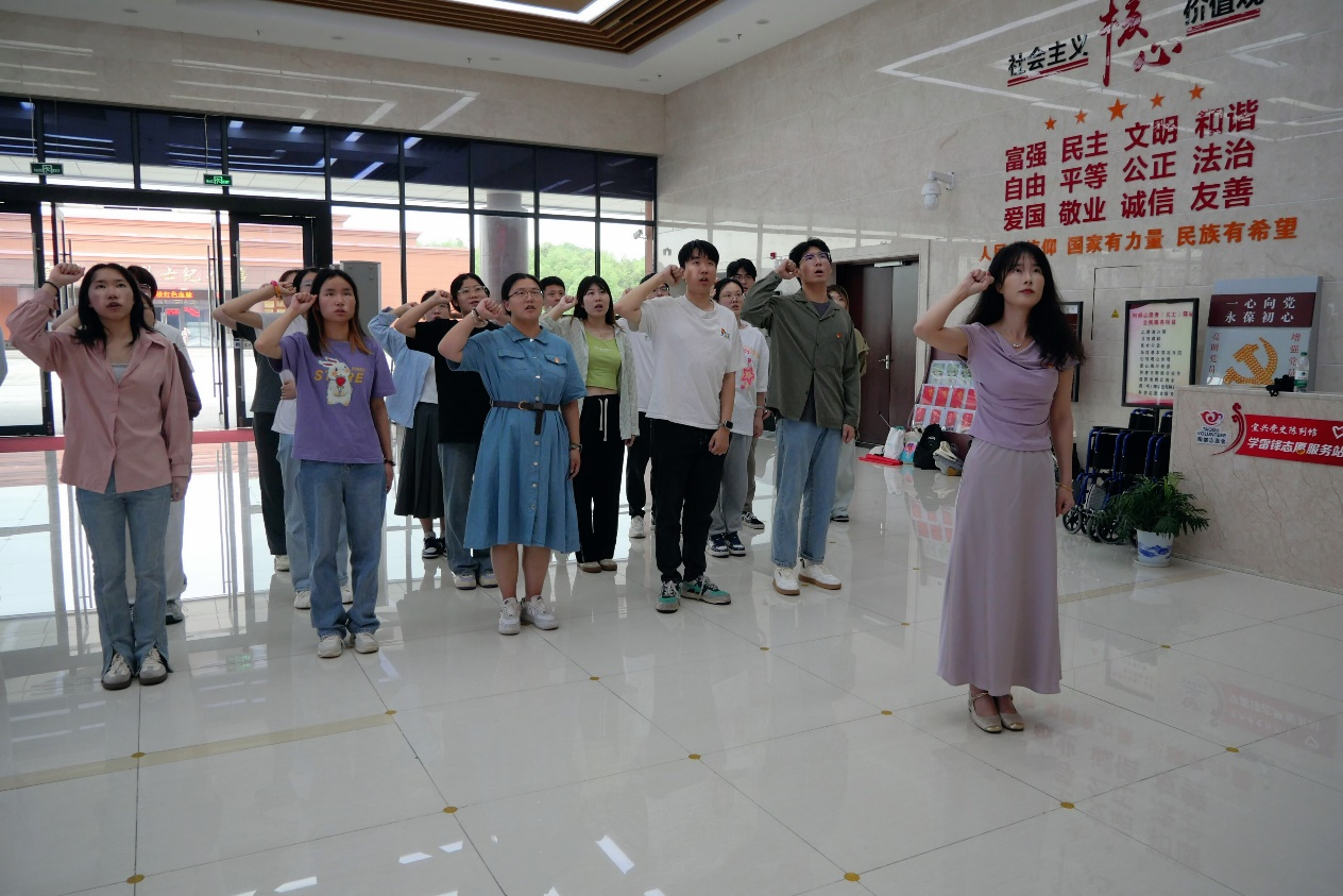 活动当天,党支部成员参观了宜兴党史陈列馆、革命烈士纪念馆。在讲解员的带领下,党员们沿着中共宜兴地方组织90多年的奋斗历程这一主线,参观了争取人民解放的宜兴篇章、社会主义建设的宜兴记忆篇章、改革开放实现中国梦的宜兴实践篇章等三个展区。从宜兴的砥砺奋进到中国的伟大腾飞,党引领人民所铸就的辉煌功业令党员们深受触动,支部成员将铭记革命历史,传承红色基因,永葆奋斗初心。随后,李晓洁老师为新发展党员佩戴党员徽章,带领党员们重温入党誓词,回顾初心,增强党性修养与使命感,激励党员增强身份意识,为党旗增辉,为党徽添彩。
