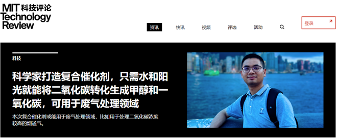 近期,《麻省理工科技评论》(MIT Technology Review China)对化学与材料工程学院青年教师焦星辰进行了专题采访,并以封面形式发表于中国官方网站及公众号。该采访的主题为“科学家打造复合催化剂,只需水和阳光就能将二氧化碳转化生成甲醇和一氧化碳,可用于废气处理领域”,重点报道了焦星辰教授近期在光催化二氧化碳还原方面的最新研究成果及未来研究设想。