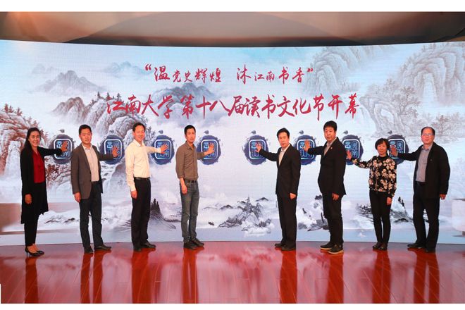 最后,领导们上台共同启动“温党史辉煌 沐江南书香”江南大学第十八届读书文化节,将本次活动推向高潮。