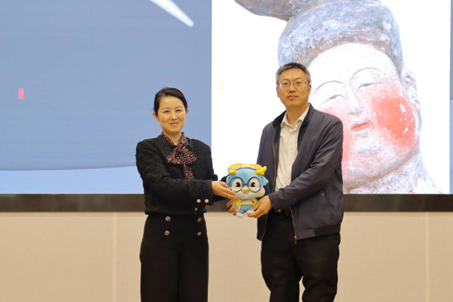 最后,江琳娜向宜兴研究生院管理办赠送“鼋阅江南”讲座IP玩偶“鼋元”。