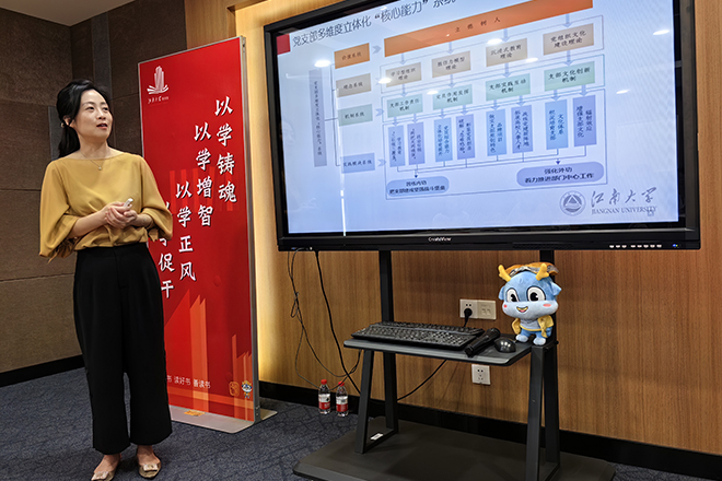 会上,田卫平以“‘对标争先’中的责任与担当”为主题就上级相关要求、学校创建情况、学校创建做法、学院创建特色、支部责任与任务等方面展开讲解全国样板党支部的评选要求以及我校各级党组织党建示范创建特色,提出要加强政治引领,结合支部特色,推动党建业务融合,形成特色鲜明的基层党建方法。王冰 “以‘333’理念建设新时代一流机关党支部”为主题,分享了党委办公室、党委统战部、保密办党支部突出“七个有力”的支部创建要求,努力践行“党委运转中枢、统战凝心聚力、保密维稳堡垒”的职能,发挥党支部的战斗堡垒作用和党员先锋模范作用,并就样板党支部的申请和验收分享了大量“干货”。雷虹围绕党支部多维度立体化“核心能力”系统建设从“提升学习质效,强化思想政治引领;强化作风建设,展现优质服务形象;凝塑党建品牌,守正创新深耕主业”三个方面分享了支部强基创优的工作经验。陈雪梅以“创新基层党建工作 服务创新创业发展”为主题,分享了依托创服汇党建联盟拓展资源,全方位服务扶持园区科技初创型企业的成功案例,实现科技创新服务业务工作与党建工作的双向奔赴。