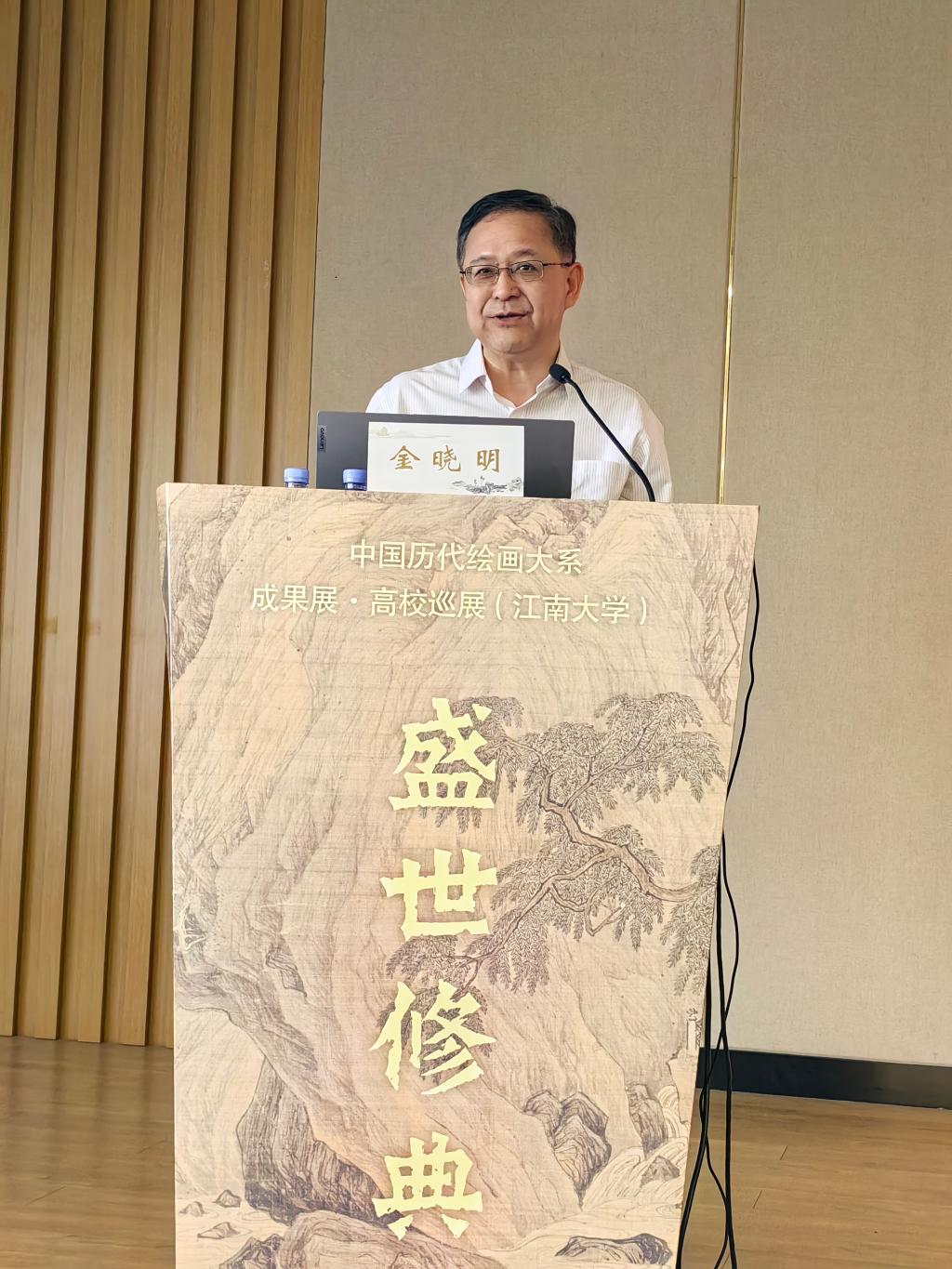 10月28日下午,“中国历代绘画大系”编委会委员、浙江大学中国古代书画研究中心副主任、博士生导师金晓明教授做客我校“艺术课堂”“鼋阅江南讲座”,向江南师生讲述《再现经典 传承文脉——从<宋画全集>到“中国历代绘画大系”》。江苏高校图工委兄弟高校图书馆馆长及我校400余名师生参与了本次活动。讲座由图书馆副馆长孙颖主持。