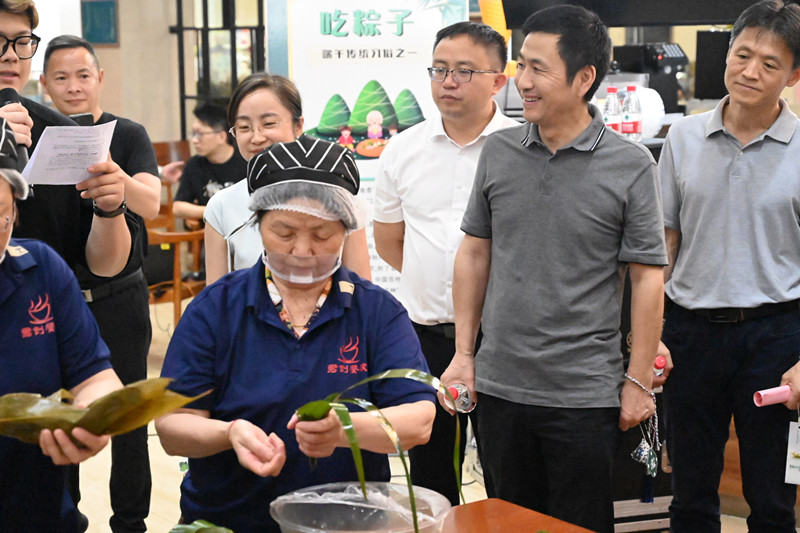 食堂员工展示包粽子工艺