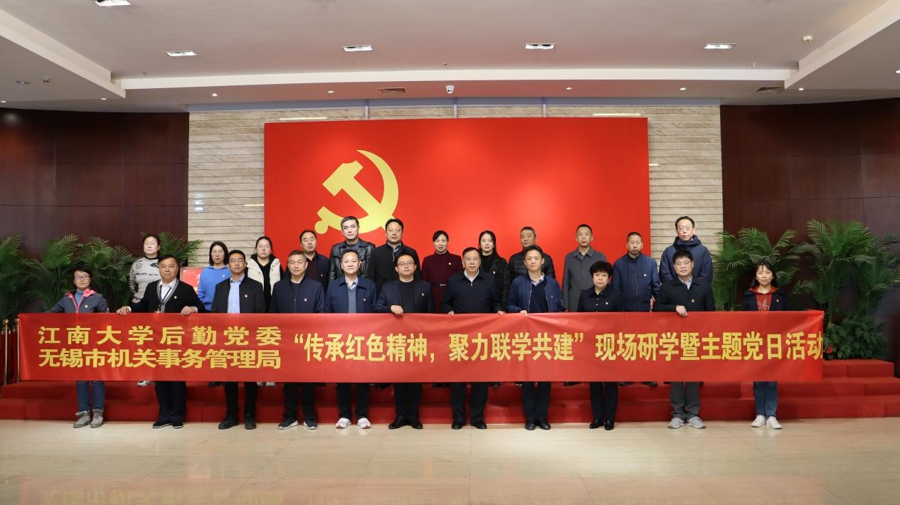 11月20日下午,江南大学后勤党委与无锡市机关事务管理局携手共建,在滨湖党建馆开展了“传承红色精神 聚力联学共建”现场研学暨主题党日活动。后勤党委全体中层干部、各党支部书记、无锡市机关事务管理局党支部党员共25人参加活动,活动由后勤党委书记朱新伟主持。
