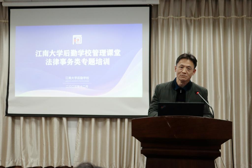 为进一步提升后勤党委管理干部的法治意识和法律素养,加强后勤保障工作的规范化、制度化、法治化建设,12月7日下午,后勤党委在臻善楼314会议室开展法律事务类专题培训,邀请江南大学法学院副教授浦纯钰作培训交流。后勤党委科级及以上干部、各部门、中心办公室主任共30余人参加培训,培训由后勤党委书记朱新伟主持。