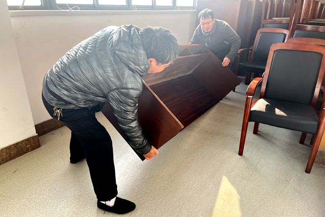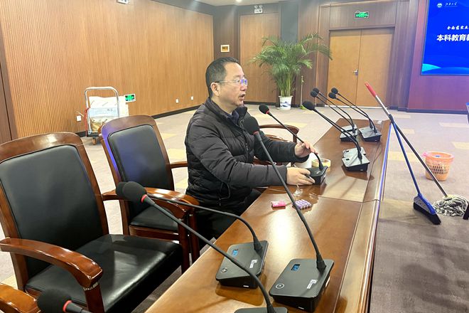 会前,会务组严格落实会场、贵宾室、主席台、发言席、横幅、背景音乐、绿植等准备工作。审核评估期间,中心工作人员每天早上7:00就到各自工作岗位,做好会场通风等卫生准备,清理桌椅、抽屉,检查茶水、纸巾、纸笔等物品配备,再次检测音响、话筒等设备,协助摆放会议资料。12月27日,专家们在研讨室工作到晚上22:30,会务人员坚守岗位,全程做好服务。为保障好29日上午在图书馆五楼会议室召开的审核评估意见交流会,会议中心从27日起就开始了会场准备工作,精心把会场布置成U字型,摆放160余张座位。全体成员力求在细节之处、细微之处做到优质高效,确保服务保障“零失误、零差错”。