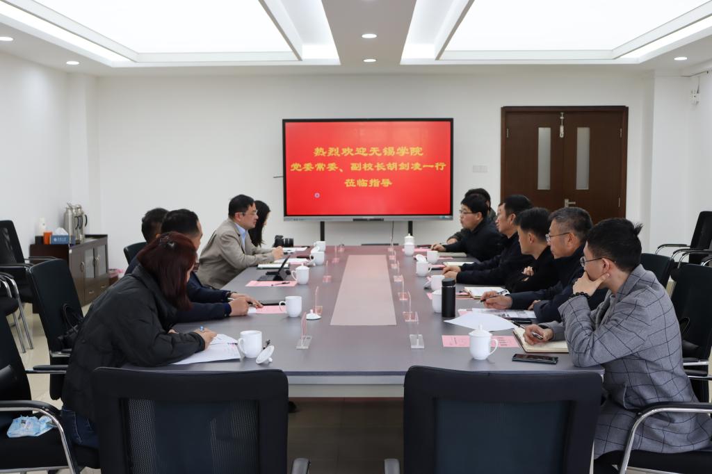 胡剑凌对江南大学的热情接待表示感谢,他从学科建设、校园建设、新校区规划等介绍了无锡学院的办学发展情况。会上,双方就新校区规划建设、校园管理、食堂经营模式及采购管理办法等方面展开深入交流和探讨。