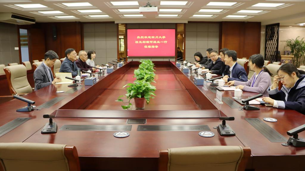 4月18日上午,四川大学校长助理何继业率后勤保障部领导来我校调研交流。校党委副书记戴月波、后勤党委书记朱新伟、后勤管理处处长吴光明及相关部门负责人参加座谈交流。会议由朱新伟主持。