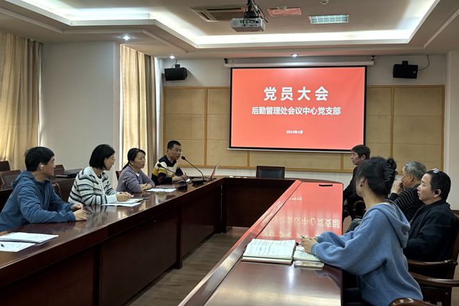 4月26日上午,后勤管理处会议中心党支部在文浩馆会议室召开党员大会,做党纪学习教育动员并做专题党课。