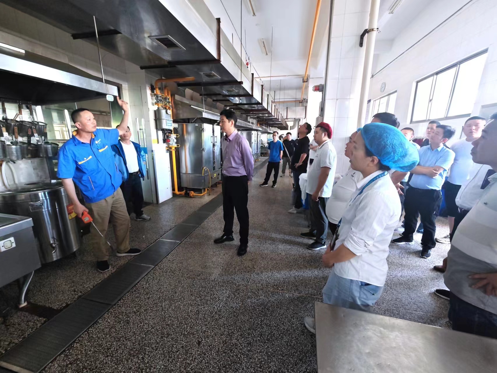 会后,全体人员至四食堂进行实操演练。现场演示了燃气设备的正确操作方法,指导食堂员工进行了实践操作。