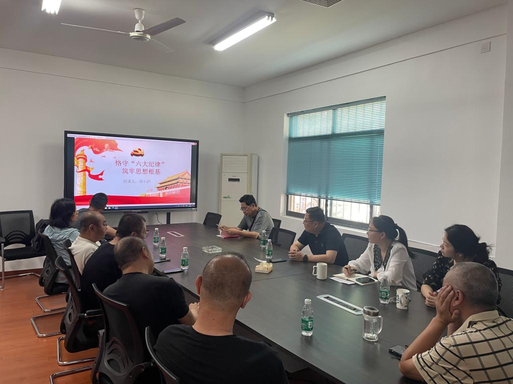 会上,党支部书记周小沪以《恪守六大纪律 筑牢思想根基》为题给全体党员上了一堂生动的党课,他从“为什么开展党纪学习教育”入手,深刻解读了开展党纪学习教育的背景意义、目标要求、重要内容,并结合案例,围绕“扬信念之帆、存敬畏之念、怀感恩之心、享知足之乐”四个方面进行剖析和指导,帮助全体党员强化认识、守住底线、规范言行。随后,纪检委员武成效领学了《中国共产党纪律处分条例》第四章、第五章、第六章内容,进一步强化党员的纪律意识,加强自我约束,始终做到忠诚干净担当。