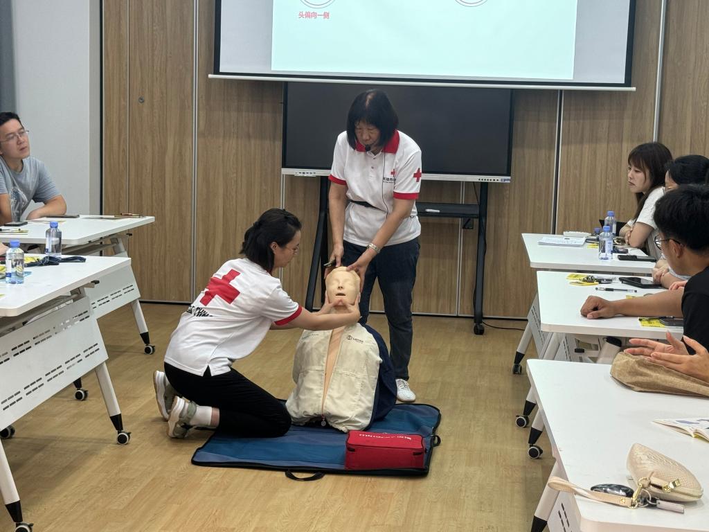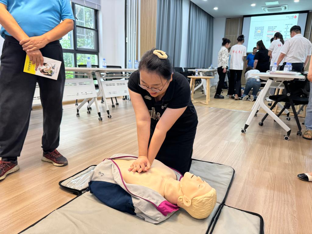 为深入推进平安和谐校园建设,普及急救基本知识和操作技能,提升后勤教职工应对突发事故和意外伤害的能力,7月3日下午,后勤分工会特邀无锡市红十字会授课团队,在“一站式”学生社区开展心肺复苏(CPR+AED)应急救护专题培训,50余名后勤职工参加此次培训。