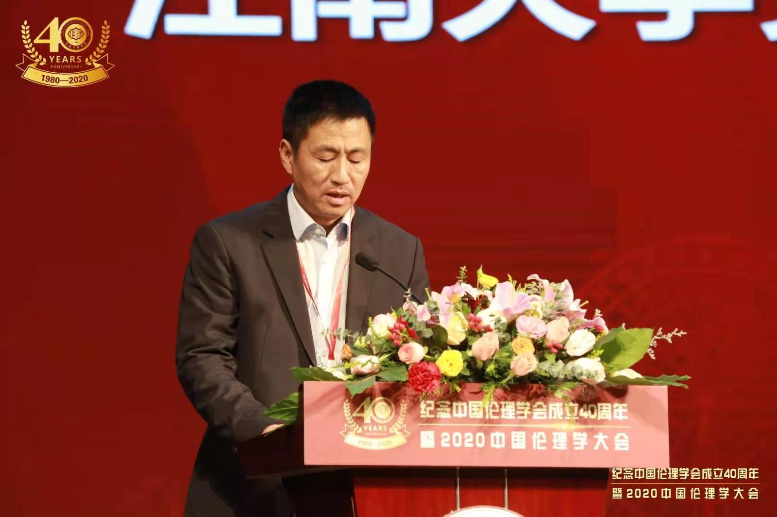 戴月波在讲话中指出,中国伦理学会40年来的发展历程,正是改革开放以来包括伦理学在内的哲学社会科学繁荣发展的生动实践,同时也为弘扬中华民族的优秀伦理文化,提升公民思想道德素质,推进社会主义精神文明建设作出了积极而重要的贡献。一直以来,江南大学非常重视包括伦理学在内的哲学社会科学的建设和发展,学校将以此次伦理大会为契机,进一步加强与中国伦理学会以及各兄弟院校的交流合作,不断拓宽思路、开阔视野、科学决策,为繁荣发展伦理学事业、弘扬中华道德文化贡献更多智慧和力量。
