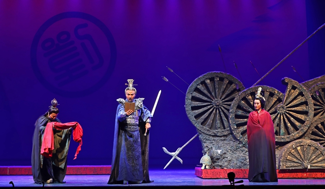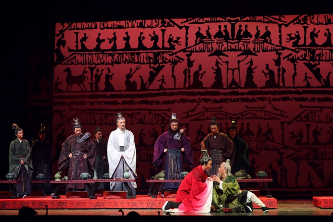 作为江苏省演艺集团锡剧团首个国家艺术基金资助项目,《大风歌》是锡剧首次真正意义上尝试的历史题材剧目,也是锡剧表演上一次前所未有的风格创新。锡剧发源于苏南水乡,有着浓郁的水乡韵味,经常上演的是才子佳人的故事,而《大风歌》却挖掘出了锡剧在小桥流水之下的别样风骨,用优美的江南音韵表达雄浑的大汉气度。该剧由梅花奖得主、著名锡剧表演艺术家周东亮领衔,锡剧名家汤达、张金华、季春艳主演。“锡剧王子”周东亮一改以往的小生扮相,以老生形象扮演的汉天子刘邦霸气登场。