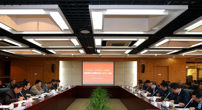 为认真学习贯彻党的十九届四中全会精神,紧扣“不忘初心、牢记使命”主题教育相关要求,11月14日上午,校党委理论学习中心组在行政楼B307会议室举行 “不忘初心、牢记使命”理论学习(扩大)会议。在锡校党委理论学习中心组成员、党群部门主要负责人、各二级党组织书记参加会议。校党委书记朱庆葆主持会议。