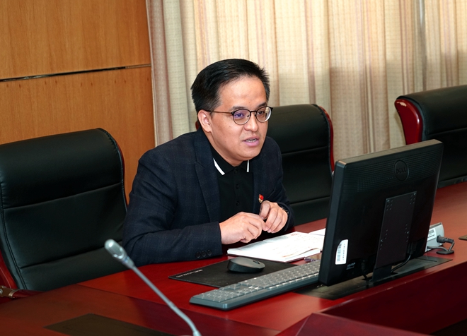 会议第二项议程是由马克思主义学院唐忠宝教授介绍参加学习贯彻党的十九届四中全会精神中央宣讲团动员会情况。唐忠宝传达了中共中央政治局常委、中央书记处书记王沪宁在会议上的讲话精神,围绕十九届四中全会精神“为什么要学,学习什么,如何宣讲”三个方面进行了汇报交流。唐忠宝表示,十九届四中全会着重研究了坚持和完善中国特色社会主义制度、推进国家治理体系和治理能力现代化的若干重大问题。高校应以高度的政治责任感和历史使命感,做好大会精神的宣传工作,在引导广大师生充分认识中国特色社会主义制度的本质特征和优越性,学习我国国家制度和国家治理体系的显著优势等方面发挥好重要作用。