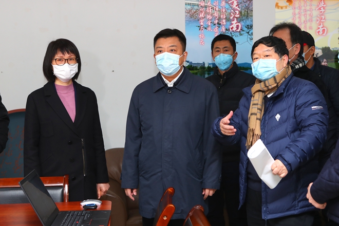 1月30日上午,无锡市委副书记、市长杜小刚,副市长高亚光,以及滨湖区政府,市卫健委、市教育局、市工业和信息化局、市农业局、市商务局、市行政审批局等负责人一行来校现场检查防疫工作。我校校长陈坚,党委副书记戴月波、副校长田备,以及校疫情防控指挥部有关人员陪同检查。