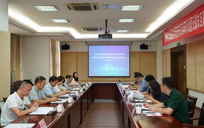 无锡市互联网传播研究会理事、我校人工智能与计算机学院党委书记张华介绍在锡高校大学生网络行为特征分析及其对策开展研究课题情况,课题将围绕当前大学生网络安全与法律意识大调研,针对无锡大学生网络安全状况、网络安全关注点、网络安全意识、网络安全能力开展普查,形成高质量调研报告,为政府加强大学生网络安全教育提供政策咨询。无锡市互联网传播研究会秘书长、校党委宣传部网络思政宣传科科长张铁根介绍了《2020年网信普法进高校活动方案(讨论稿)》中普法倡议活动的具体方案,并听取了与会人员关于《“坚持依法上网 清朗网络空间”倡议书》的意见和建议。
