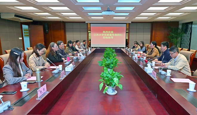 10月29日,江苏大学党委常委、党委宣传部部长金丽馥一行16人来校交流座谈。校党委常委、党委宣传部部长倪松涛热情接待,党委宣传部相关同志参加座谈。校党委宣传部副部长、党委教师工作部副部长陈炜昀主持会议。