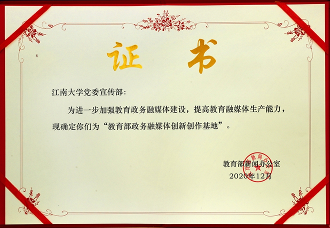 会议发布了2020教育政务新媒体年度大数据和45个“2020教育政务新媒体年度案例”。江南大学报送的《紧扣热点,用创意视频讲好江南故事》2020教育政务新媒体短视频传播类年度案例。此外,包括江南大学在内的6家单位被确定为“教育部政务融媒体创新创作基地”。
