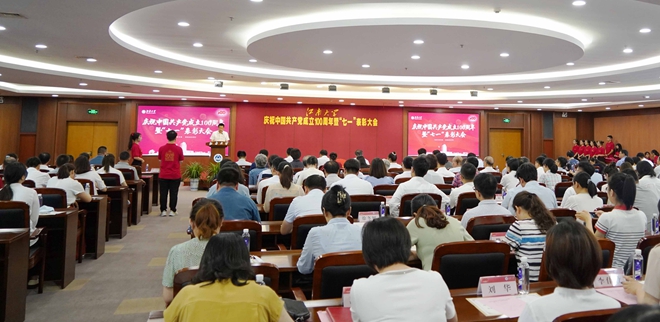 最后,朱庆葆号召全体师生党员更加紧密团结在以习近平同志为核心的党中央周围,建功新发展阶段、落实新发展理念、服务新发展格局,乘势而上、勠力前行,以高质量发展庆祝建党100周年,为建设“世界知名、中国一流、江南风格的研究型大学”贡献智慧和力量,为实现中华民族伟大复兴中国梦不懈奋斗。