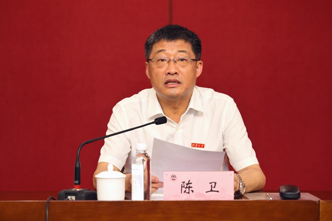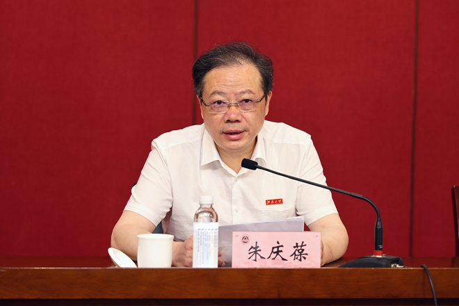 校党委书记朱庆葆在讲话中指出,教育部党组、教育部关于我校副职领导干部的任免决定,充分体现了上级组织对学校干部队伍建设和学校事业发展的高度重视。学校各项成绩的取得,离不开教育部党组的正确领导,也离不开学校历届党政领导班子和全体师生员工的不懈努力。他代表学校党委对由于任职年限原因退出领导岗位的田备同志给予了高度评价并表达诚挚感谢;对新进校领导班子的符惠明、张影陆、堵国成三位同志表示了充分肯定并提出新的要求和期望。朱庆葆代表学校党委领导班子表态,将把思想和行动统一到教育部党组的决定和部署上来,全力支持新任命的三位同志开展工作,带领全体江南人共同开创学校各项事业发展的新篇章。朱庆葆强调,学校各级领导干部要迅速地把思想统一到中央和部党组的决策部署上来,统一到齐心协力推动学校事业发展上来,以实际行动支持学校领导班子的工作开展;要始终怀有责任重如山的压力,始终满怀干事创业的激情,坚持把发展作为第一要务、师生利益第一需求,使各项工作经得起实践的检验、师生的检验、历史的检验;要以推进“十四五”规划实施和深化教育评价改革为抓手,统筹抓好“双一流”建设,努力推动学校在办学格局、发展水平、治理体系与治理能力等方面再创新佳绩,共同带领学校事业的高质量发展。