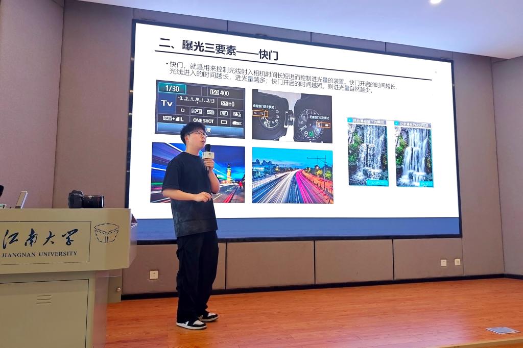 鲁钦正以《从入门到精通,带你玩转短视频》为题,以“数码单反介绍”“曝光三要素”引入,从焦点、白平衡、景别、构图、镜头语言、升降格与无级变速等角度以案例的形式,详细讲解了玩转摄影的实用小技巧。结合短视频传播的底层逻辑,他讲授了“先练基本功、镜头组接勿随意、正确选择焦段、拒绝画内推拉”“先有审美、再有构图”“传播的信息只有被关注才能实现价值”的短视频拍摄制作要点,为与会师生的短视频策划与制作提供了切实可行的参考。