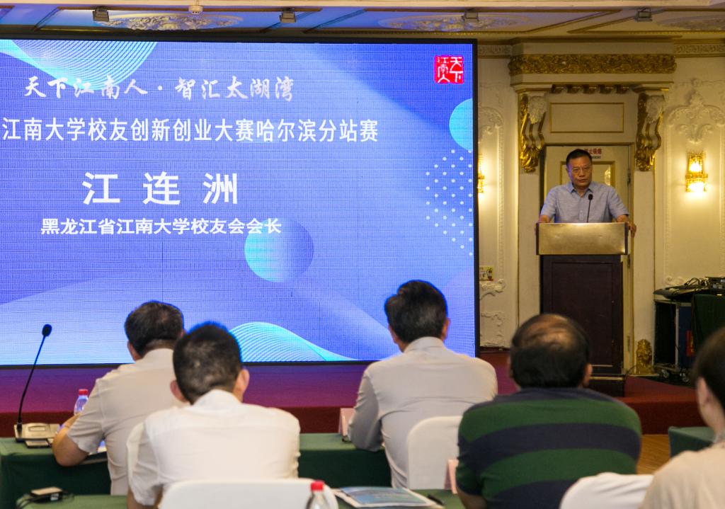 8月7日上午,第二届江南大学校友创新创业大赛哈尔滨分站赛成功举办。江南大学党委副书记符惠明,黑龙江省江南大学校友会会长江连洲,江南大学设计学院党委书记邱建平、社会资源处处长黄敏 、大学科技园总经理殷宝良,辽宁省江南大学校友会会长魏炜、副会长商大鹏,黑龙江省江南大学校友会秘书长李延峰,吉林省江南大学校友会秘书长张斌斌,以及来自江南大学社会资源处、大学科技园代表,黑龙江省校友代表等100余人出席了此次大赛。