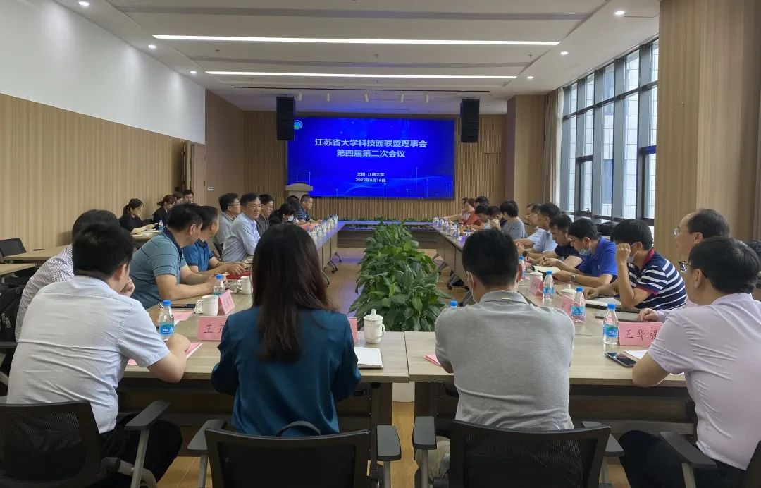 9月16日,江苏省大学科技园联盟第四届理事会第二次会议在大学科技园报告厅召开。江南大学党委副书记符惠明、江苏省教育厅科技与产业处二级调研员俞向东及江苏省大学科技园联盟理事会全体成员单位负责人出席会议。会议由中国大学科技园联盟副理事长、江苏省大学科技园联盟理事长、大学科技园总经理殷宝良主持。